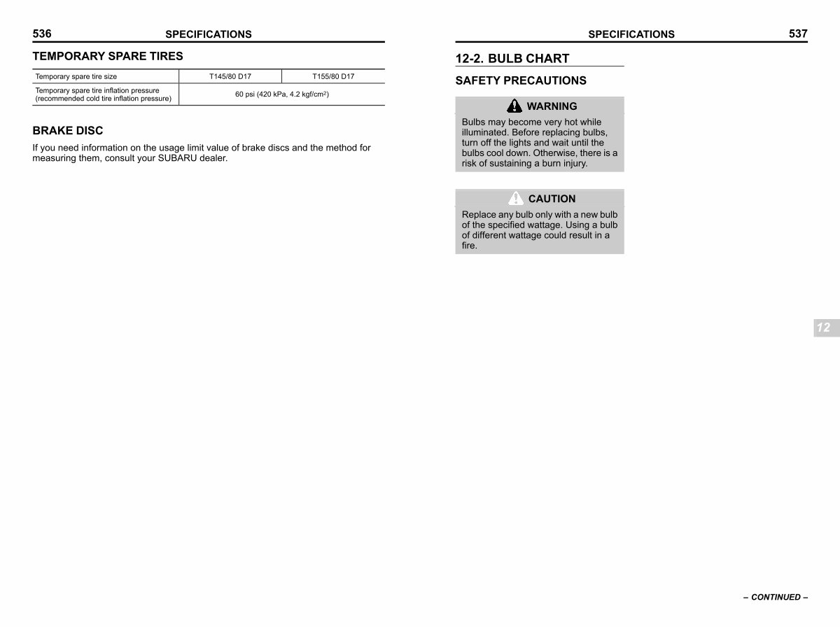 12-2. BULB CHART SAFETY PRECAUTIONS s12ac