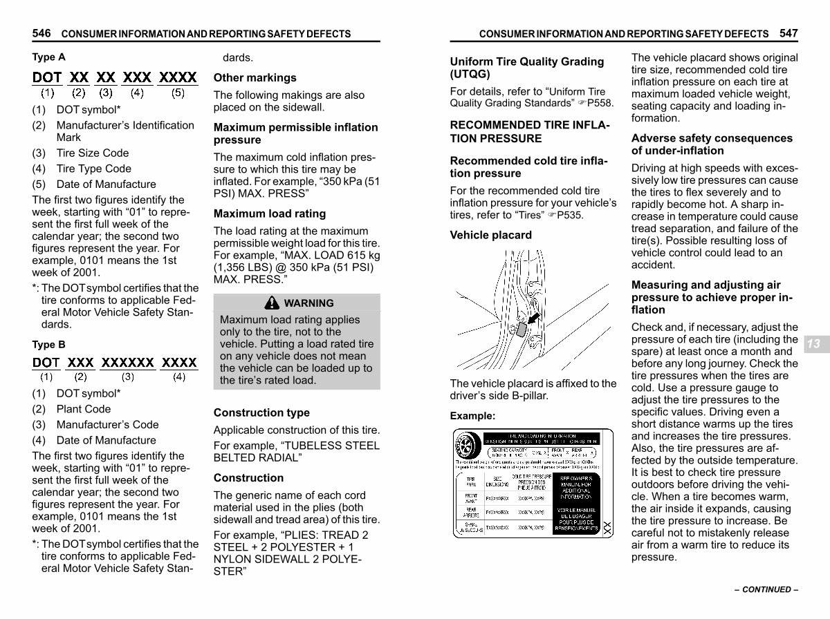 *: The DOTsymbol certifies that the tire conforms to applicable Federal Motor Vehicle Safety Standards. Other markings s13ab0103
