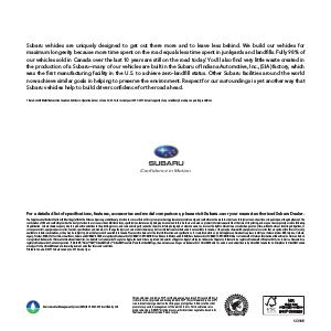 its publication. Colours shown may vary due to reproduction variations in the printing process, and some vehicle parts cannot be shown in certain photographs. Subaru Canada, Inc. reserves the right to discontinue or make changes at any time, without notice or incurring obligations, to