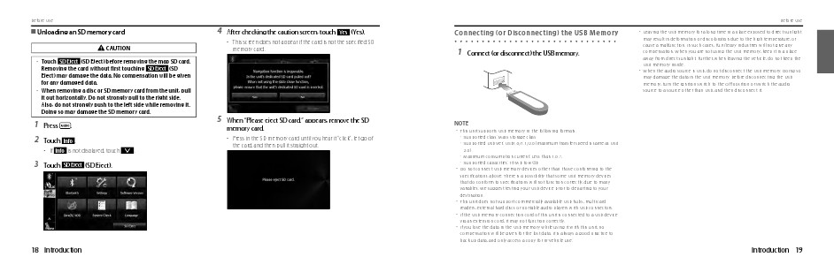 may damage the data in the USB memory. Before disconnecting the USB