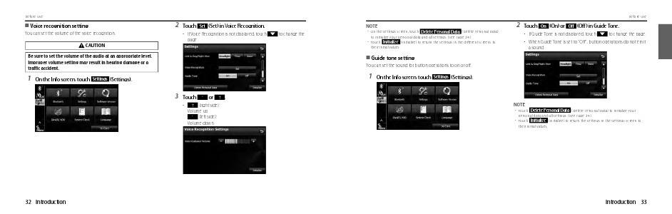 • Touch Initialize (Initialize) to return the settings in the Settings screen to