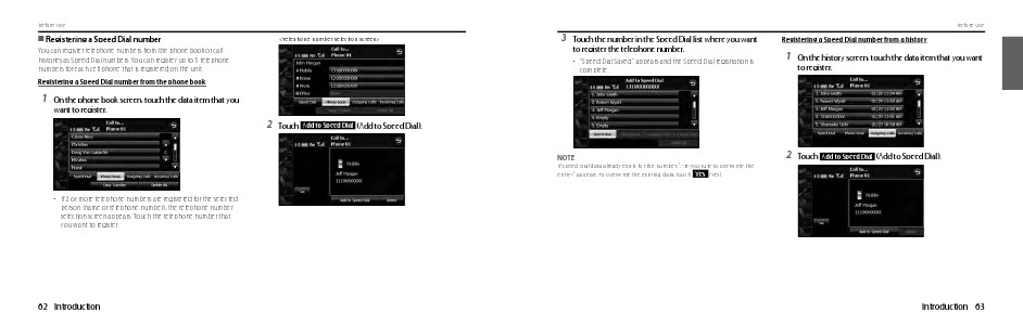 histories as Speed Dial numbers. You can register up to 5 telephone