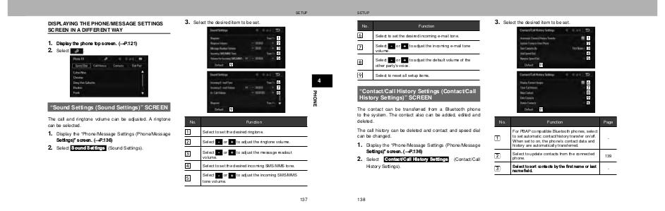 DISPLAYING THE PHONE/MESSAGE SETTINGS