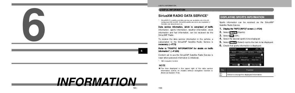 Sports information can be received via the SiriusXM®
