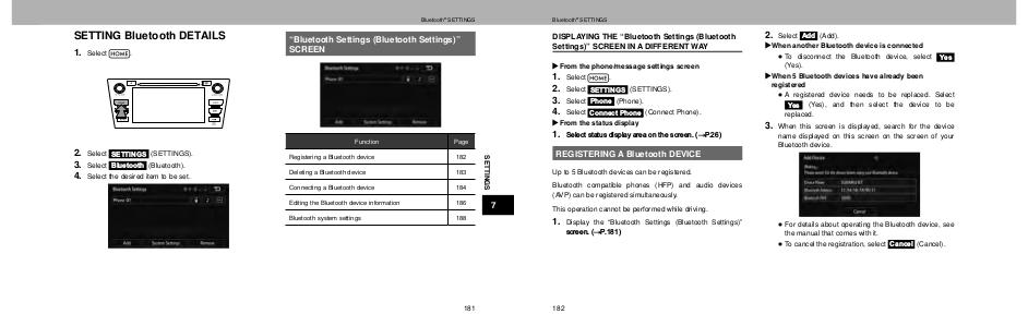 Bluetooth® SETTINGS
