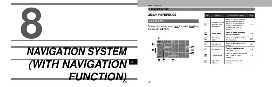 8 NAVIGATION SYSTEM (WITH NAVIGATION FUNCTION) 197 8
