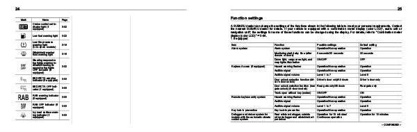 navigation unit*, the settings for some of these functions can be changed using the display. For details, refer to “Combination meter