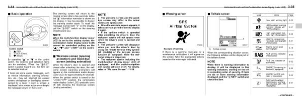 . The welcome screen and the goodbye screen may differ in the actual words and appearance . . Once the welcome screen appears , it takes a certain period of time to display it again . . If the ignition switch is operated after unlocking the driver ’ s door , the welcome screen will not appear even when the driver ’ s door is opened and closed . . The welcome screen will disappear when you lock the driver ’ s door by using the remote keyless entry system ( all models ) or the keyless access function ( if equipped ) while the welcome screen is displayed . . The welcome screen including the multi-function display ( color LCD ) ( if equipped ) and the audio / navigation unit can be set to on or off . For details , refer to “ Welcome Screen ” F3-38 .