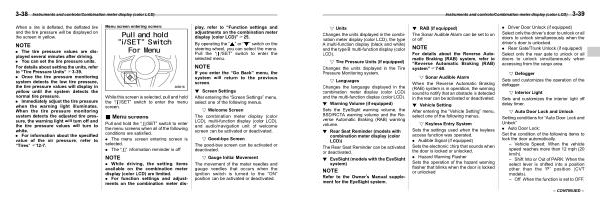 . While driving , the setting items available on the combination meter display ( color LCD ) are limited . . For function settings and adjustments on the combination meter display , refer to “ Function settings and adjustments on the combination meter display ( color LCD )” F25 .