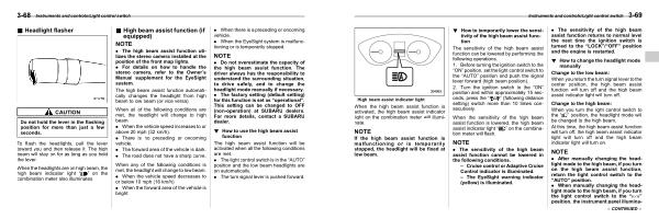 . The sensitivity of the high beam assist function cannot be lowered in the following conditions . – Cruise control or Adaptive Cruise Control indicator is illuminated . – The EyeSight warning indicator ( yellow ) is illuminated .