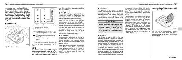 When the ignition switch has been turned to the “ ACC ” position , the movement of the select lever from the “ N ” to “ R ” position is only possible by depressing the brake pedal . For details , refer to “ Shift lock function ” F7-29 .
