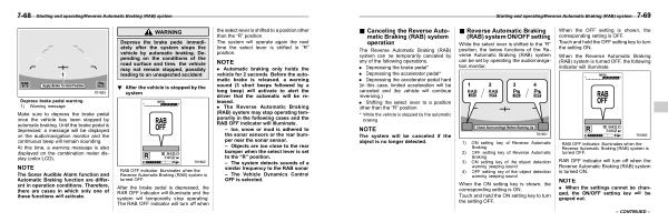 Starting and operating / Reverse Automatic Braking ( RAB ) system