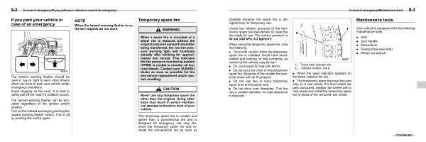 In case of emergency / Maintenance tools 9-3 possible because the spare tire is designed only for temporary use .