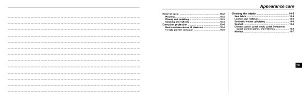 Washing ............................................................... 10-2 Waxing and polishing ............................................ 10-3 Cleaning alloy wheels ........................................... 10-4