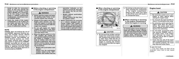 & Before checking or servicing in the engine compartment