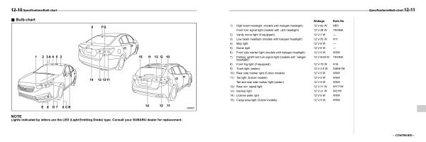 Lights indicated by letters are the LED ( Light Emitting Diode ) type . Consult your SUBARU dealer for replacement .