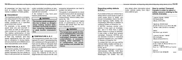 13-14 Consumer information and Reporting safety defects / Uniform tire quality grading standards