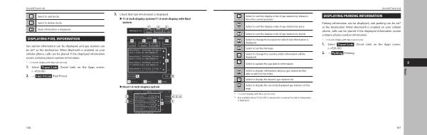 Gas station information can be displayed , and gas stations can be set * as the destination . When Bluetooth is enabled on your cellular phone , calls can be placed if the displayed information screen contains phone number information .