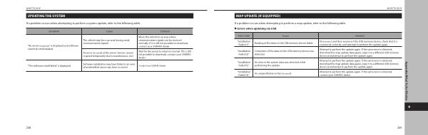 If a problem occurs when attempting to perform a map update , refer to the following table . �Errors when updating via USB