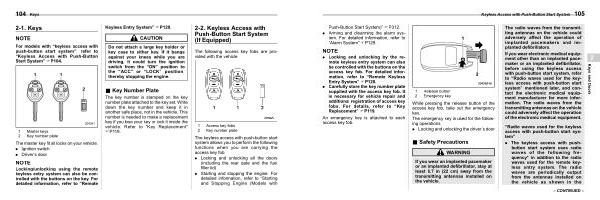 For models with “ keyless access with push-button start system ”, refer to “ Keyless Access with Push-Button Start System ” FP104 .