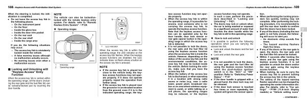 . It is not possible to lock the doors , the rear gate and the fuel filler lid using the keyless access function when the push-button ignition switch is in the “ ACC ” or “ ON ” position . Refer to “ Switching Power Status ” FP147 .