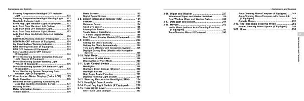 3-16 . Wiper and Washer ........................................ 237 Windshield Wiper and Washer Switches .............. 239 Rear Window Wiper and Washer Switch .............. 240 3-17 . Defogger and Deicer ..................................... 241 3-18 . Mirrors ........................................................... 243 Inside Mirror ( without Auto-Dimming Function ) ( If Equipped )..................................................... 243