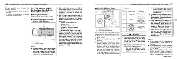 . If the push-button ignition switch does not operate smoothly , stop the operation . Contact a SUBARU dealer immediately .