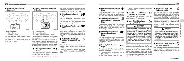 Warning and Indicator Lights 173 |