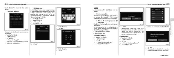 If a birthday or anniversary is approaching , a message will be shown when the ignition switch is turned to the “ ON ” position . This function can be set to on or off by “ Reminder Screen ”. For details , refer to “ General settings ” FP194 .