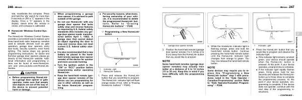 Some devices may require you to replace this “ Programming a New HomeLink ® button ” step 3 with procedures noted in the “ Gate Operator / Canadian Programming ” section . Refer to “ Gate Operator / Canadian Programming ” FP249 .