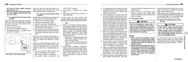 . Every time when starting the engine , the Auto Vehicle Hold function will be set to “ OFF ”.