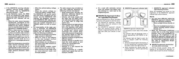 . If the BSD / RCTA warning indicator appears , exercise proper caution . For details , refer to “ BSD / RCTA Warning Indicator ” FP361 .