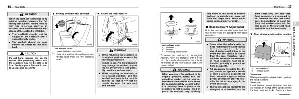 When the seatback is returned to its original position , observe the following precautions . Failure to do so may lead to serious injury or an accident because the operation efficiency of the seatbelt is inhibited .