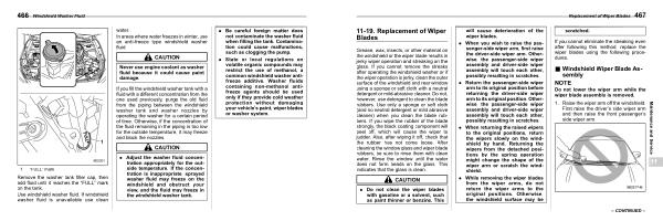 . When returning the raised wipers to the original positions , return the wipers slowly on the windshield by hand . Returning the wipers from the detached positions by the spring operation might change the shape of the wiper arm or scratch the windshield .