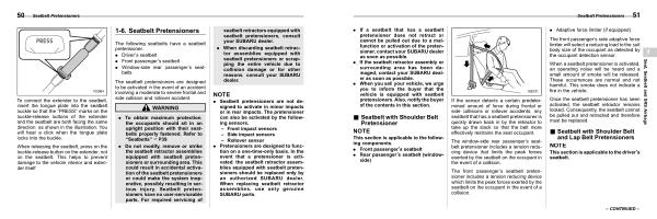 . If a seatbelt that has a seatbelt pretensioner does not retract or cannot be pulled out due to a malfunction or activation of the pretensioner , contact your SUBARU dealer as soon as possible .