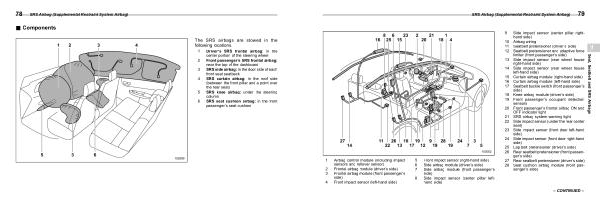 21 SRS airbag system warning light 22 Side impact sensor ( under the rear center seat )