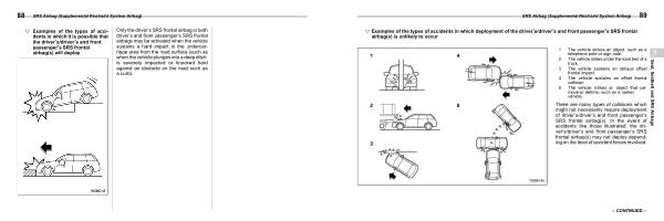 ! Examples of the types of accidents in which it is possible that the driver ’ s / driver ’ s and front passenger ’ s SRS frontal airbag ( s ) will deploy s01ah021102