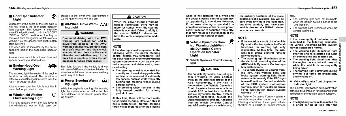 the ordinary functions of the brake system are still available. You will be safe while driving in this condition, but drive carefully and have your vehicle checked at a SUBARU dealer as soon as possible.