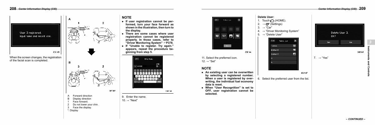 . There are some cases where user registration cannot be registered properly. In those cases, refer to“ Driver Monitoring System” FP378.