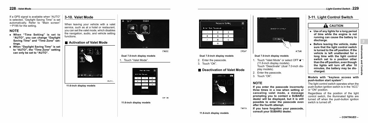 If you enter the passcode incorrectly three times in a row when setting or canceling valet mode, a message prompting you to contact a SUBARU dealer will be displayed, but it is still possible to enter the passcode even after the fourth attempt.