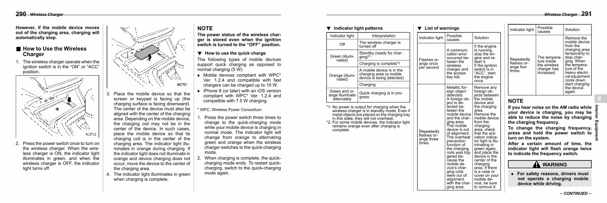 1. The wireless charger operate when the ignition switch is in the“ ON” or“ ACC” position.