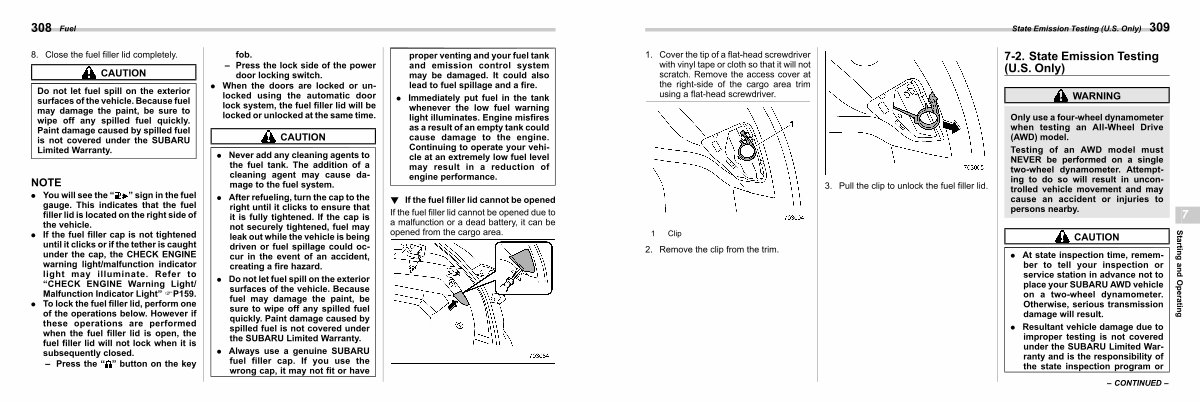 . Resultant vehicle damage due to improper testing is not covered under the SUBARU Limited Warranty and is the responsibility of the state inspection program or