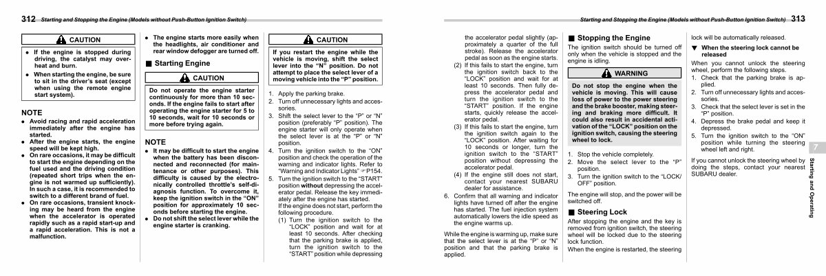 ( 4) If the engine still does not start, contact your nearest SUBARU dealer for assistance.