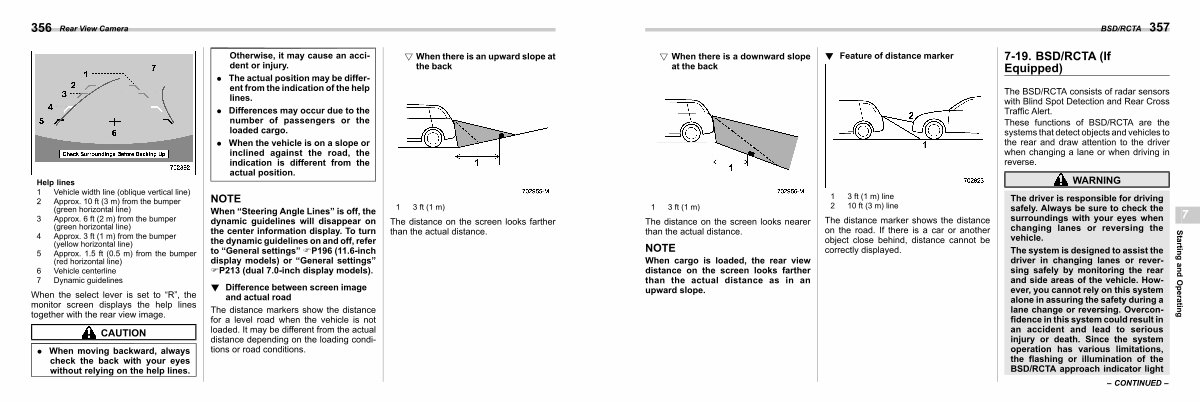 The distance markers show the distance for a level road when the vehicle is not loaded. It may be different from the actual distance depending on the loading conditions or road conditions.