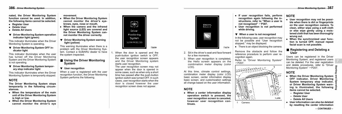 . When the Driver Monitoring System OFF indicator, Driver Monitoring System temporary stop indicator, or Driver Monitoring System warning is illuminated, the following items cannot be selected. – Register User – Delete User – Delete All Users