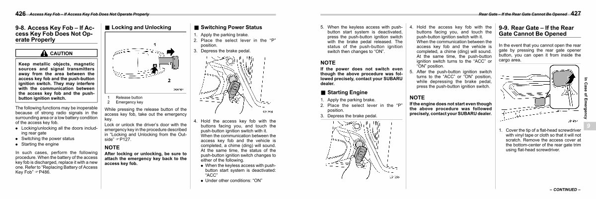 If the engine does not start even though the above procedure was followed precisely, contact your SUBARU dealer.