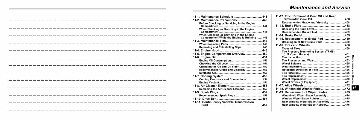 11-1. Maintenance Schedule................................. 443 s11
