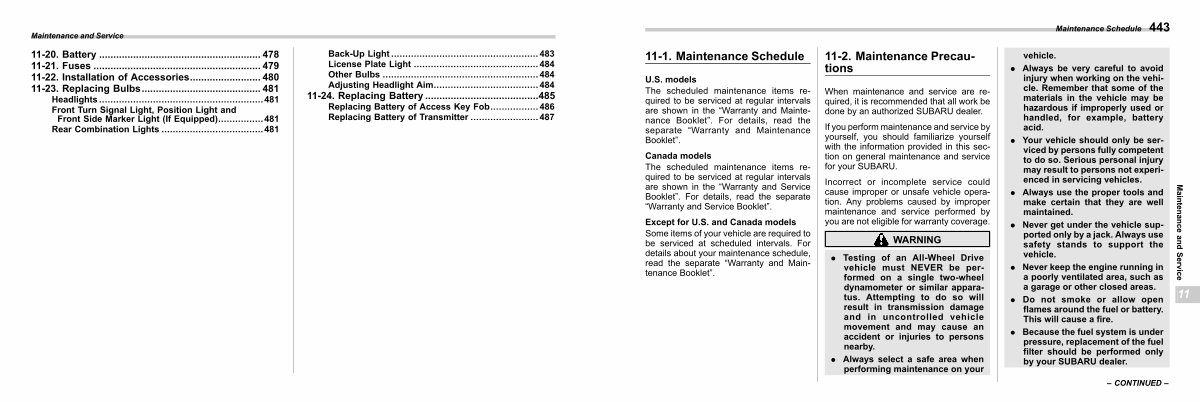 When maintenance and service are required, it is recommended that all work be done by an authorized SUBARU dealer.