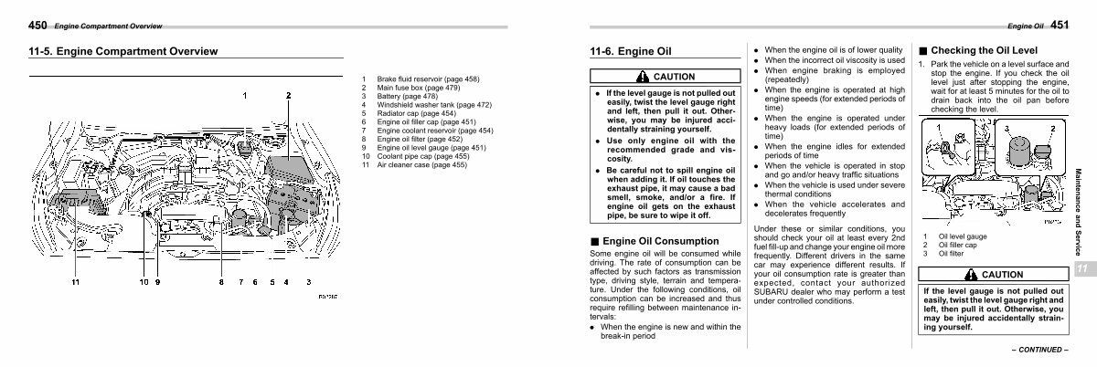 Under these or similar conditions, you should check your oil at least every 2nd fuel fill-up and change your engine oil more frequently. Different drivers in the same car may experience different results. If your oil consumption rate is greater than expected, contact your authorized SUBARU dealer who may perform a test under controlled conditions.