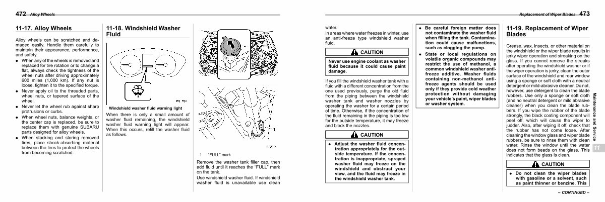 . When wheel nuts, balance weights, or the center cap is replaced, be sure to replace them with genuine SUBARU parts designed for alloy wheels.